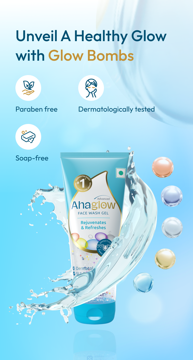 Radiant skin with every washThe dermatologist prescribed solution to ease all your skin problems. Revitalise your skin daily with Ahaglow face wash.